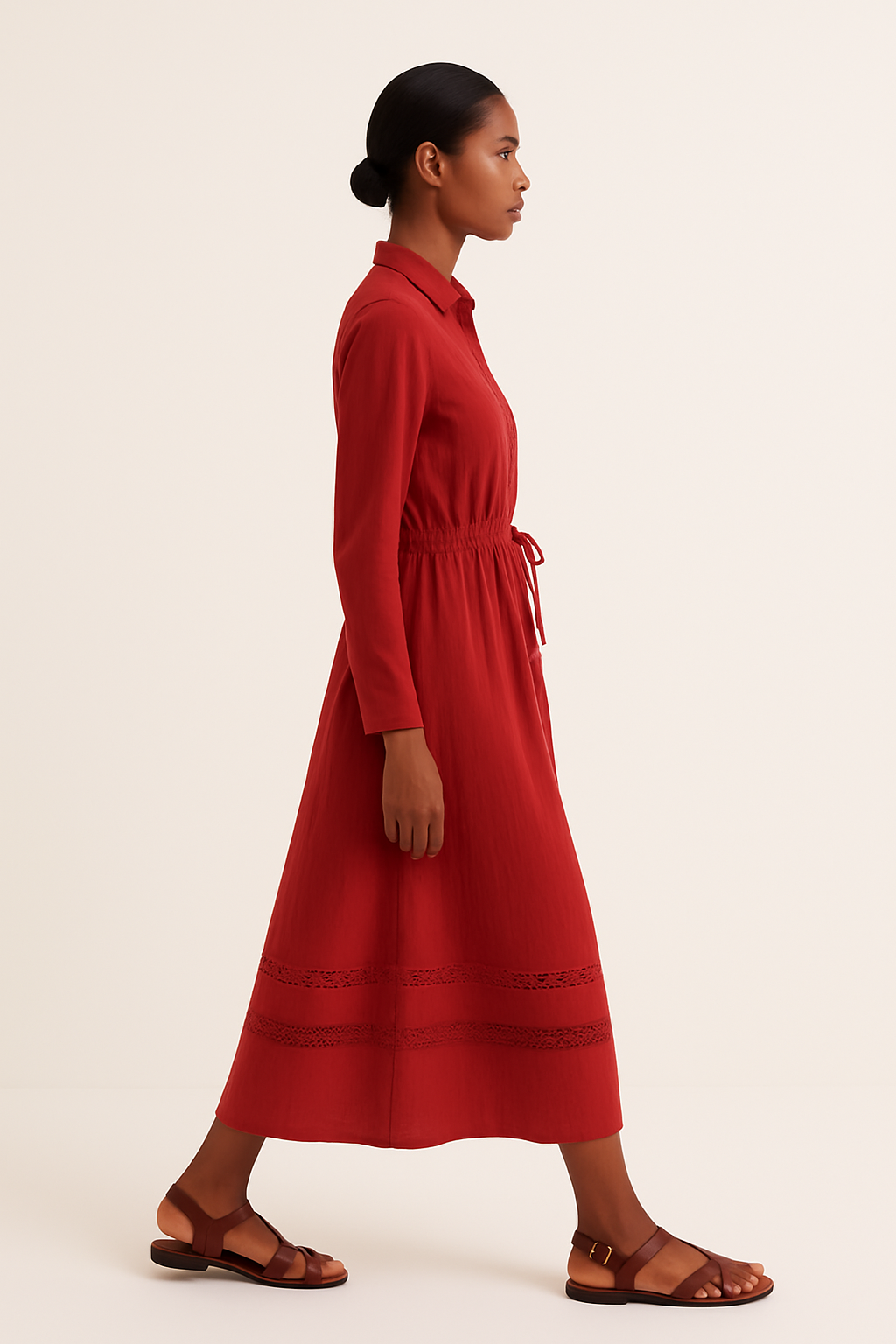 Step into effortless elegance with this red ankle-length dress, blending timeless design with modern detailing. Made from lightweight, cotton double gauze fabric, it offers both comfort and sophistication for every occasion.