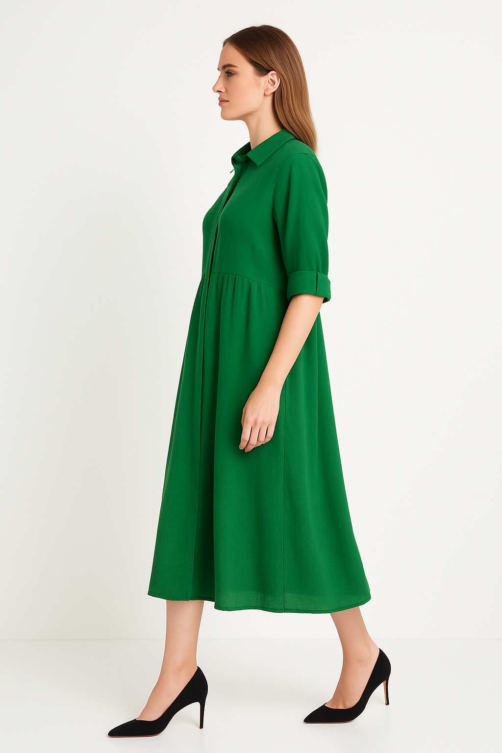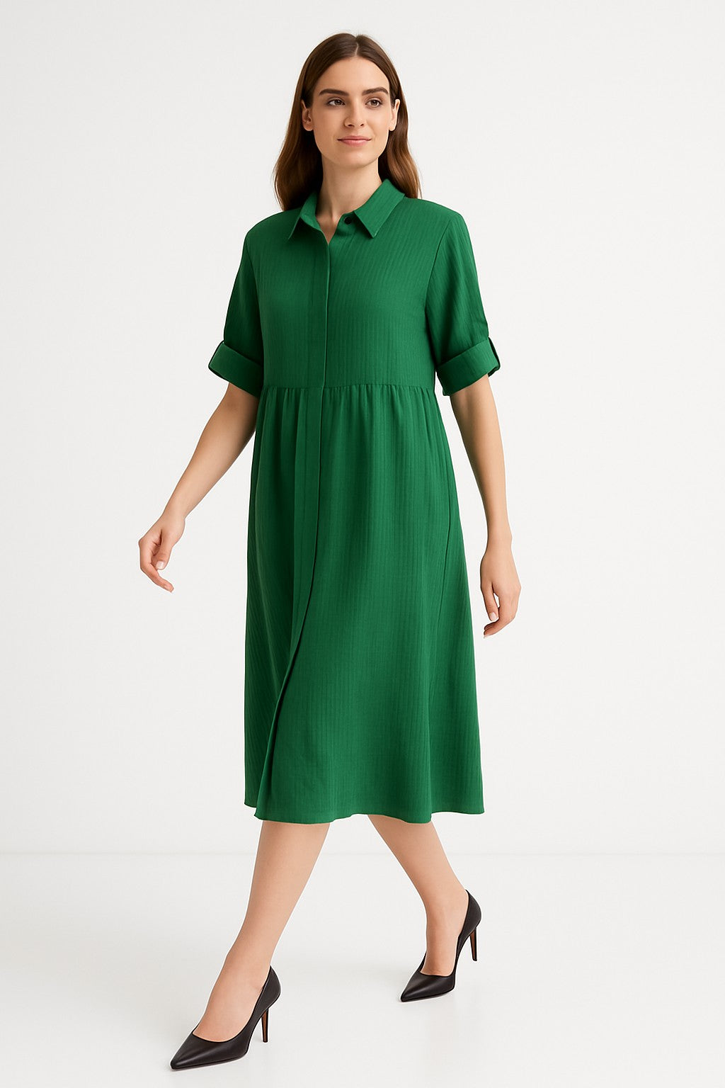 Ellara Green Midi Shirt Dress